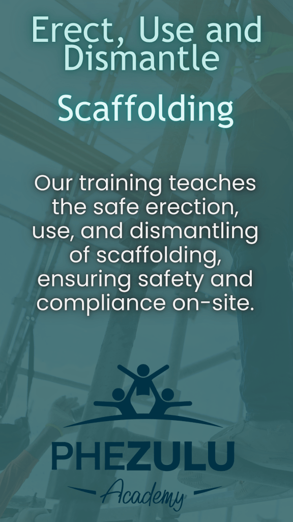 This accredited training equips learners with essential skills to safely erect, use, and dismantle scaffolding structures in compliance with South African occupational health and safety regulations. Designed for construction workers and site supervisors, the course covers hazard identification, proper assembly techniques, load management, and dismantling procedures to ensure safety and legal compliance on all worksites.